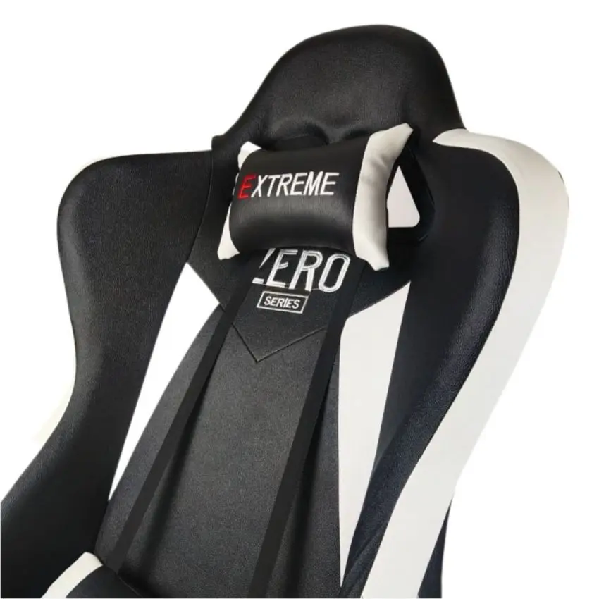 Vẫn được phối 2 màu khác biệt như 2 sản phẩm trước và Logo extreme zero được may nổi tạo vẻ sang trọng cho sản phẩm. Ghế có đầy đủ gối lưng, gối đầu giúp giảm đau mỏi cổ, thắt lưng khi ngồi lâu, phù hợp người châu Á hơn. Đệm ngồi có thể nâng hạ linh hoạt.