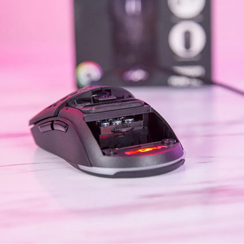 Thân chuột được làm bằng nhựa phủ lớp chống nước cao cấp, với hệ thống lỗ thông hơi ở mặt trên, các game thủ sẽ không lo chuột bị bám mồ hôi gây khó khăn cho những giờ chơi game kéo dài. Có tạ đi kèm để điều chỉnh trọng lượng