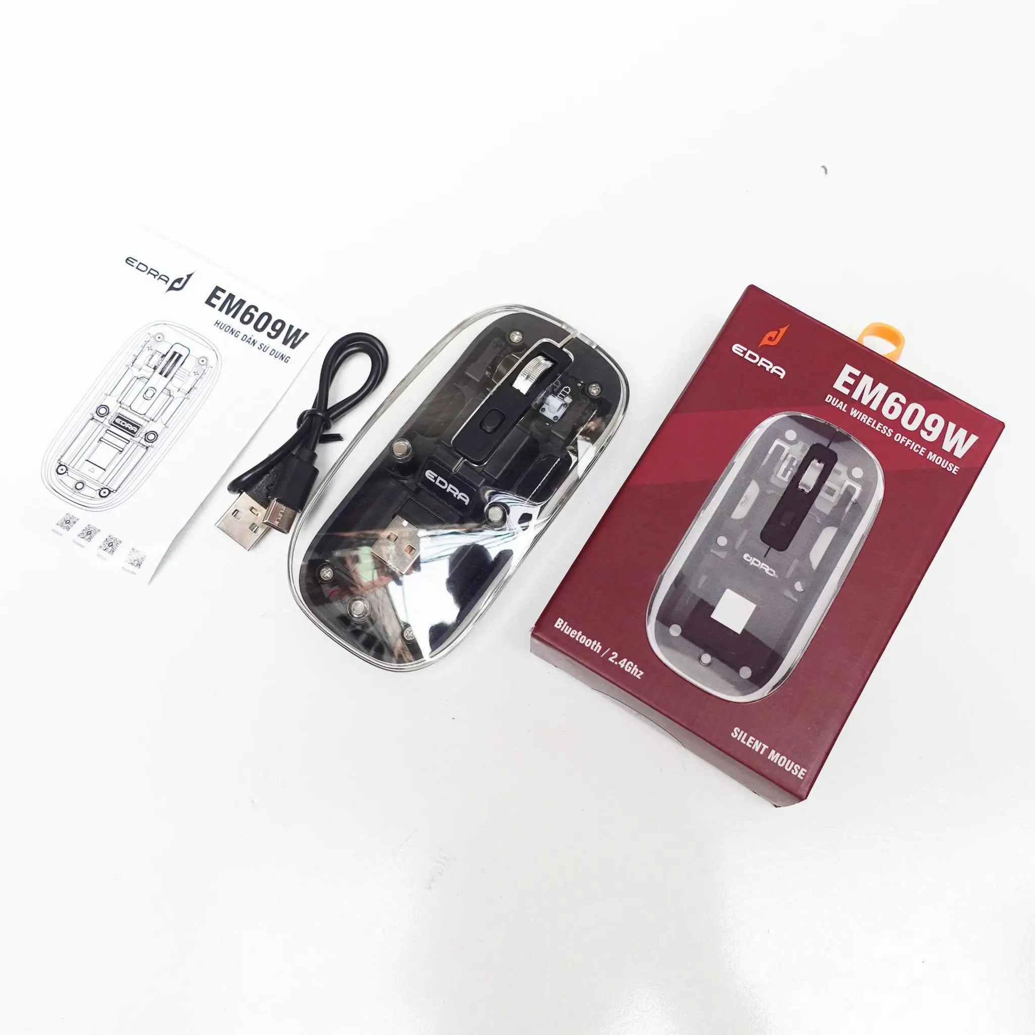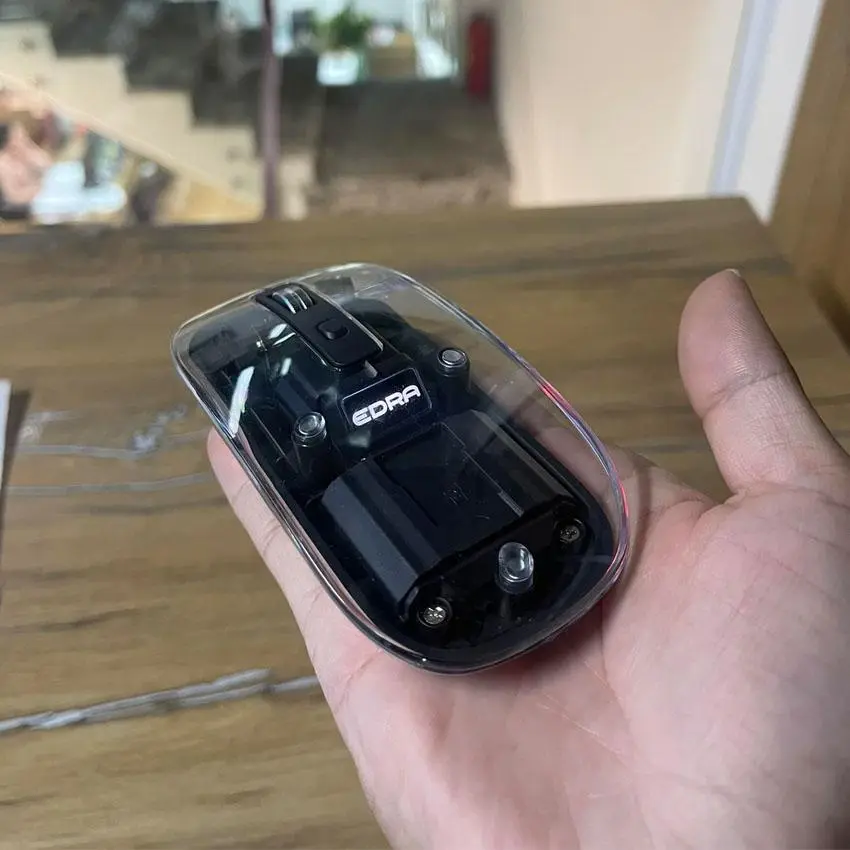 E-Dra EM609W có kiểu dáng Ambidextrous, nghĩa là đối xứng hai bên, giúp cả người thuận tay trái và tay phải đều có thể sử dụng thoải mái. Kiểu thiết kế này cũng phù hợp với nhiều kiểu cầm chuột khác nhau, bao gồm palm grip, claw grip và fingertip grip. Bên cạnh đó, thân chuột được làm từ chất liệu ABS trong suốt, mang lại vẻ ngoài hiện đại, nhẹ nhàng nhưng vẫn chắc chắn.