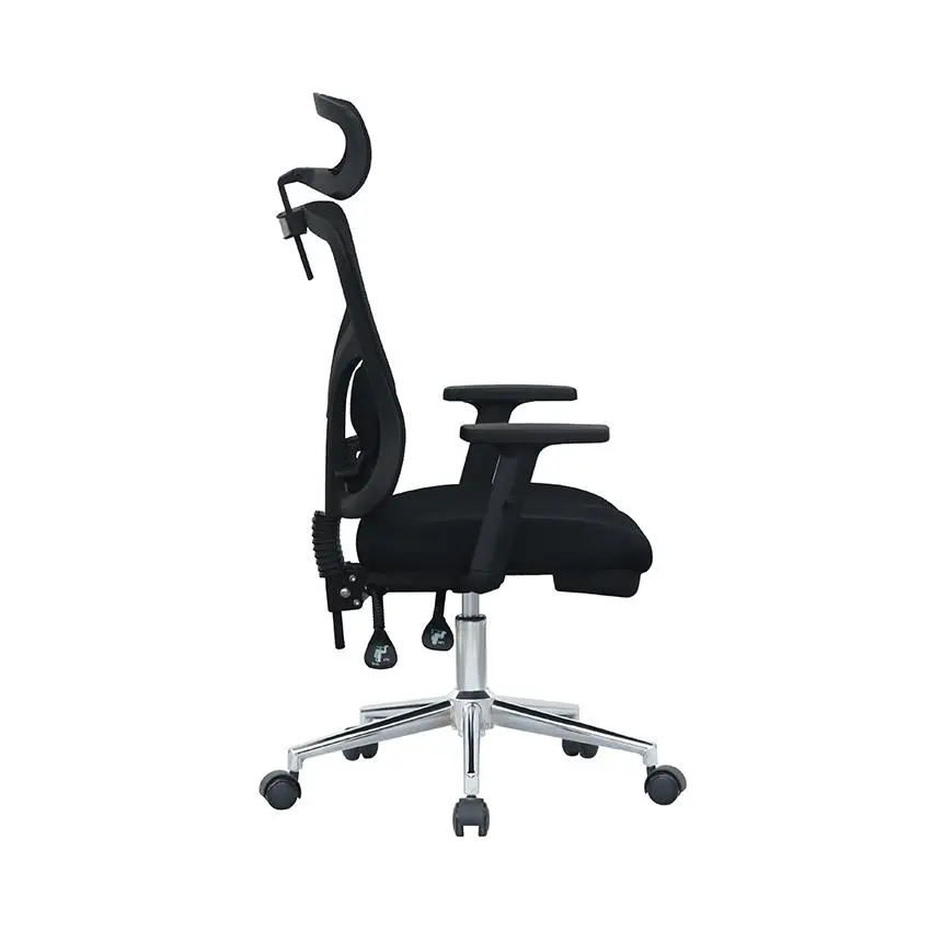 Phần tựa lưng làm từ chất liệu lưới cao cấp, giúp thoáng khí tối đa, chống tích nhiệt và tạo cảm giác dễ chịu suốt cả ngày dài. Đệm ngồi bằng mút đúc định hình, có độ đàn hồi cao, không xẹp lún sau thời gian dài sử dụng. Ghế được hoàn thiện tỉ mỉ với các chi tiết chắc chắn, đảm bảo độ bền và thẩm mỹ trong mọi không gian làm việc.