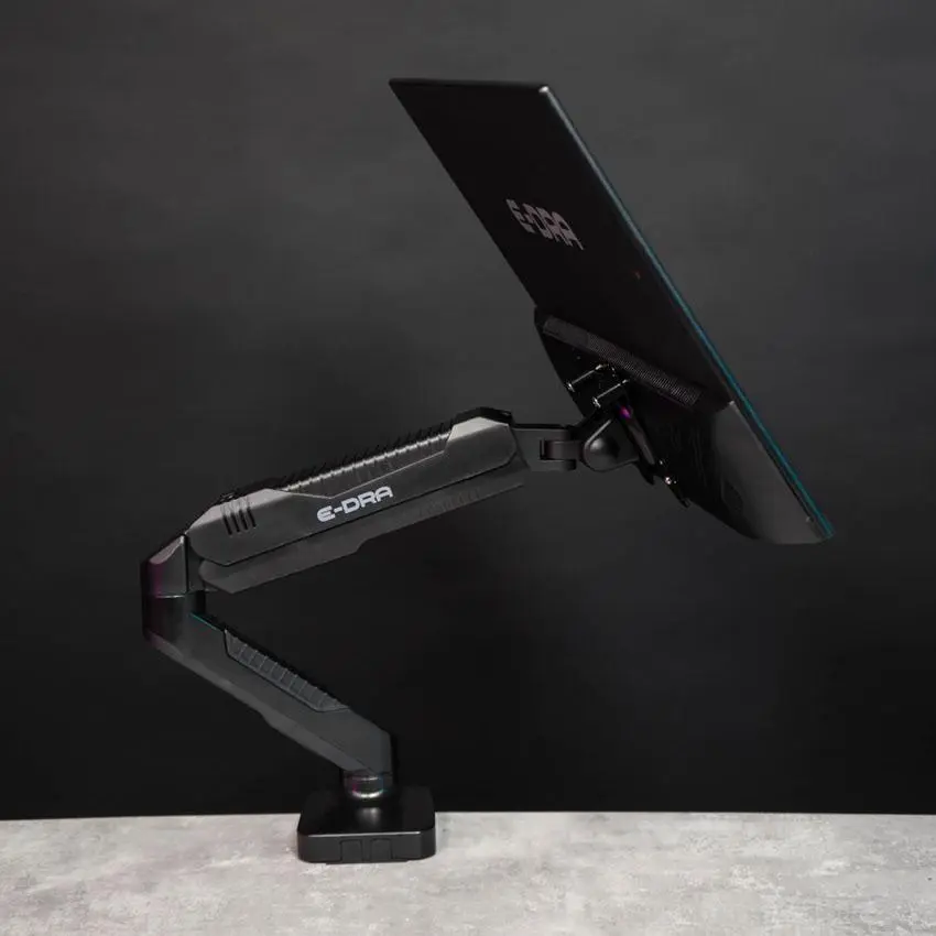 EDRA EMA7301 sở hữu thiết kế mạnh mẽ và hiện đại với tông màu đen chủ đạo, dễ dàng phối hợp với nhiều không gian làm việc khác nhau. Điểm nhấn đặc biệt của sản phẩm là cơ chế tay treo linh hoạt, cho phép người dùng tháo lắp màn hình một cách dễ dàng và nhanh chóng. Các góc cạnh của giá treo được xử lý tinh tế, tạo nên vẻ ngoài mềm mại và thân thiện với người dùng. Thiết kế gọn gàng giúp không gian làm việc của bạn trở nên chuyên nghiệp và ngăn nắp hơn, phù hợp với mọi kiểu bàn làm việc hiện đại.