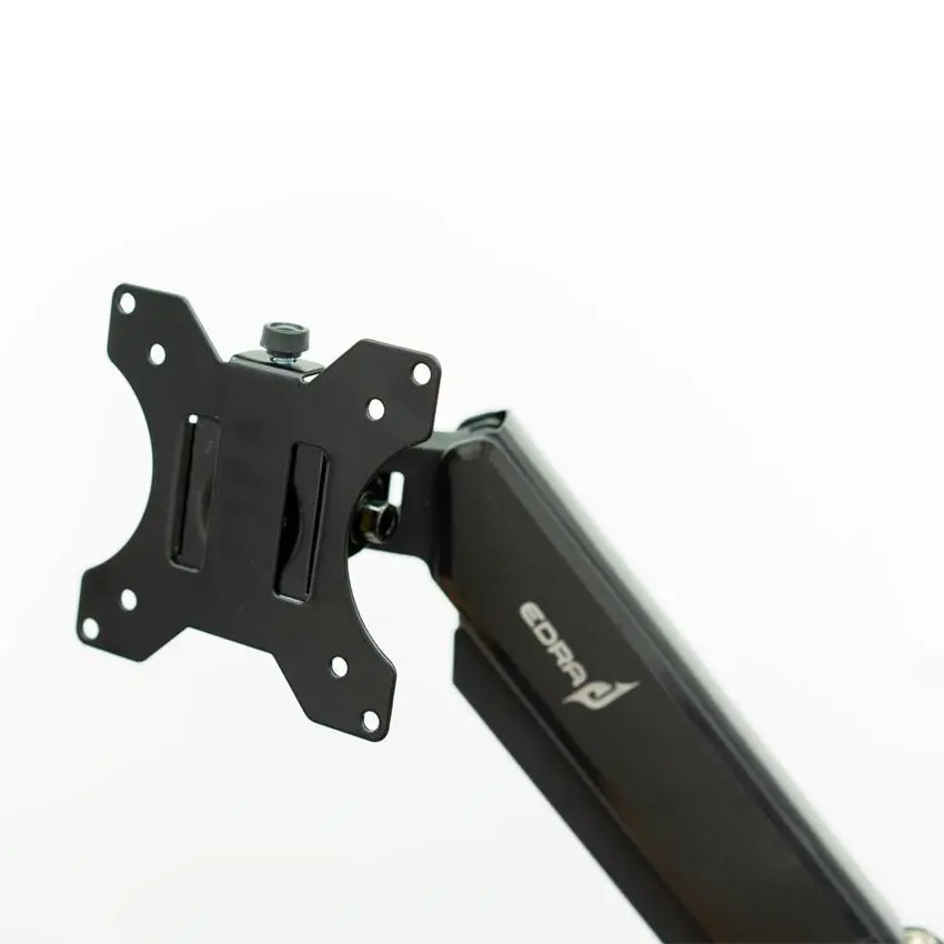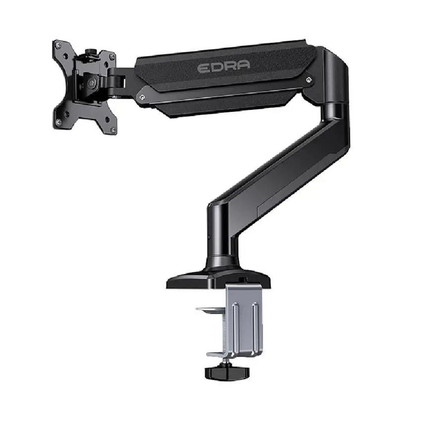 EDRA EMA7302 sở hữu thiết kế mạnh mẽ và hiện đại với tông màu đen chủ đạo, dễ dàng phối hợp với nhiều không gian làm việc khác nhau. Điểm nhấn đặc biệt của sản phẩm là cơ chế tay treo linh hoạt, cho phép người dùng tháo lắp màn hình một cách dễ dàng và nhanh chóng. Các góc cạnh của giá treo được xử lý tinh tế, tạo nên vẻ ngoài mềm mại và thân thiện với người dùng. Thiết kế gọn gàng giúp không gian làm việc của bạn trở nên chuyên nghiệp và ngăn nắp hơn, phù hợp với mọi kiểu bàn làm việc hiện đại.